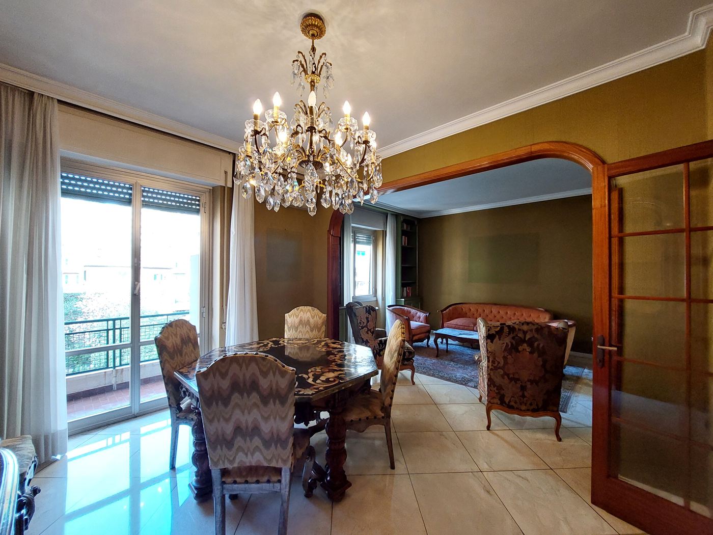 Sampierdarena nella prestigiosa via La Spezia a pochi passi da via Cantore e dall'Ospedale e parco di Villa Scassi in elegante palazzo ordinato nelle sue parti comuni siamo lieti di proporre in vendita appartamento signorile di grande metratura internamente composto da otto vani così attualmente al suo interno distribuiti: ampio ingresso arredabile, doppio salone eventualmente divisibile, zona giorno suddivisa in cucina aperta su sala da pranzo, grande camera matrimoniale con armadiatura a muro, spaziosa cameretta, bagno con vasca, comodo e pratico ripostiglio, lunga balconata perimetrale di circa 20 metri. L'appartamento si caratterizza per la presenza di arredi su misura con finiture di pregio che contraddistinguono ogni ambiente della casa. L'immobile si trova ubicato ad un piano alto servito da comodo ascensore e gode di ottima esposizione soleggiata e luminosa. Il riscaldamento è centralizzato con valvole e contatore di consumi mentre l'acqua calda è gestita in modo autonomo; è presente inoltre l'impianto di aria condizionata ed una moderna controsoffittatura con faretti incassati e illuminazione soffusa nella zona giorno. L'appartamento si caratterizza per la presenza di arredi su misura con finiture di pregio che contraddistinguono ogni ambiente della casa e sono inclusi nel prezzo di vendita attualmente richiesto. Completa la nostra offerta la presenza di una grande cantina. Per ulteriori informazioni non esitate a contattarci.