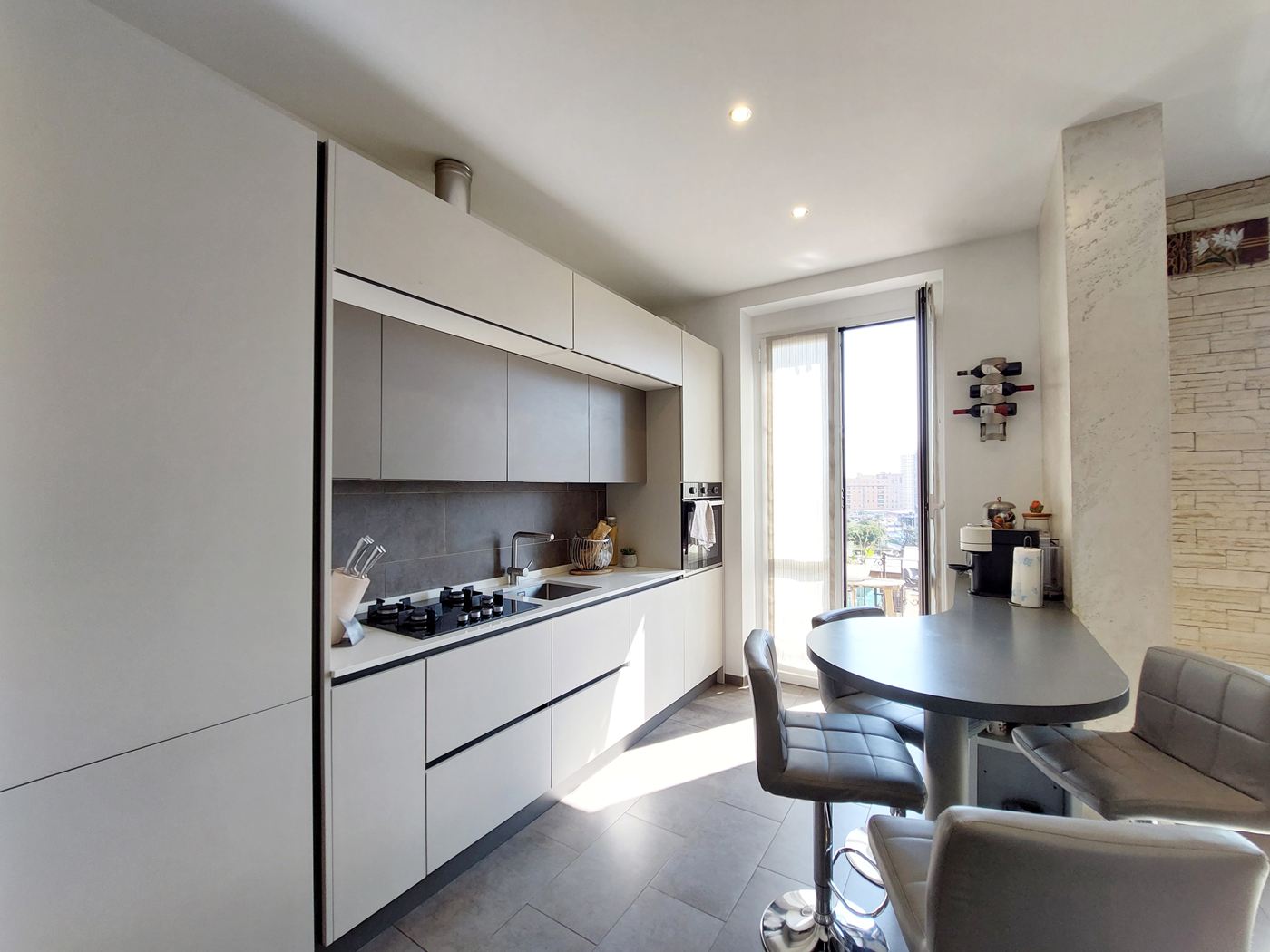 Sampierdarena, adiacente Ospedale e Parco di Villa scassi e precisamente nella parte alta di via Balbi Piovera siamo lieti di proporre in vendita splendido appartamento soleggiato e luminoso internamente completamente ristrutturato e ben rifinito composto da 7 vani così distribuiti: ingresso aperto su ampia zona giorno vivibile contraddistinta da un soggiorno aperto sulla cucina a vista, ampia camera matrimoniale, spaziosa cameretta, altra stanza, moderno bagno con comoda doccia, due balconi. L'immobile è stato oggetto di completa e totale ristrutturazione e risulta al suo interno caratterizzato dalla presenza di una pavimentazione nuova in tutto l'appartamento, finestre in alluminio bianco con doppio vetro a taglio termico, persiane alla genovese in alluminio, porta blindata, porte interne nuove scorrevoli con anta a scrigno, impianto di aria condizionata, videocitofono, impianto elettrico a norma e certificato. L' appartamento si trova ubicato ad un piano alto servito da moderno ascensore e gode di buona esposizione soleggiata e luminosa con gradevole vista mare. Il riscaldamento è termoautonomo e le spese di gestione condominiale sono contenute. Il palazzo è ordinato nelle sue parti comuni. Completa la proposta la presenza di un'ampia e comoda cantina.